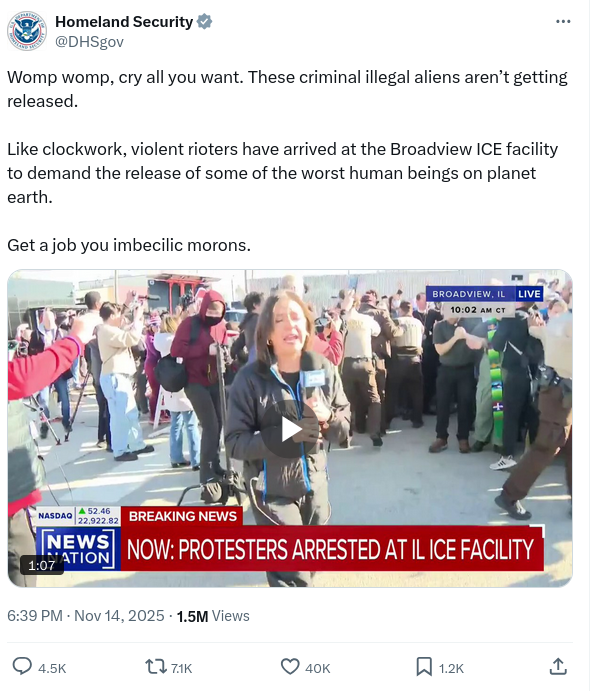 Voyarel@lemmy.world to People Twitter@sh.itjust.works · edit-219 hours agoThis is an official account of the US Governmentlemmy.worldimagemessage-square89fedilinkarrow-up1823arrow-down16file-text